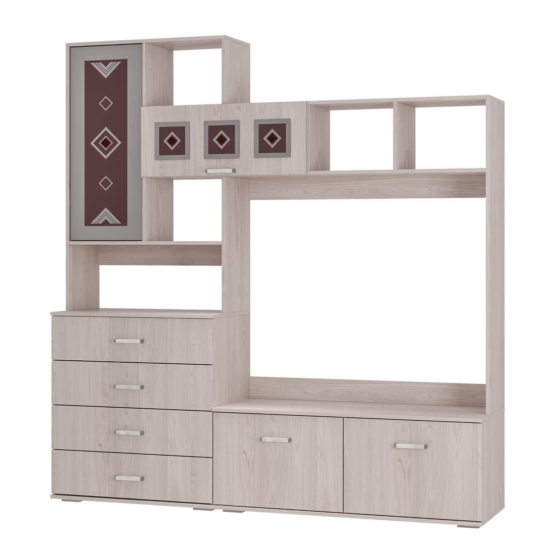 Модульная гостиная Белла - это функциональная стилизованная модель с простыми геометрическими формами. Особый шарм ей придаёт сочетание корпуса и фасада в цвете ясень белый венге/ дуб атланта, а также отделка зеркалами бронзового оттенка с фьюзингом (художественные вставки из цветного стекла), пескоструйной обработкой и еврокромкой. Удобная зона для ТВ, вместительные выдвижные ящики, закрытые и открытые полки позволяют максимально эффективно использовать пространство. Приобретая гостиную Белла ясень белый, вы делаете правильный выбор!