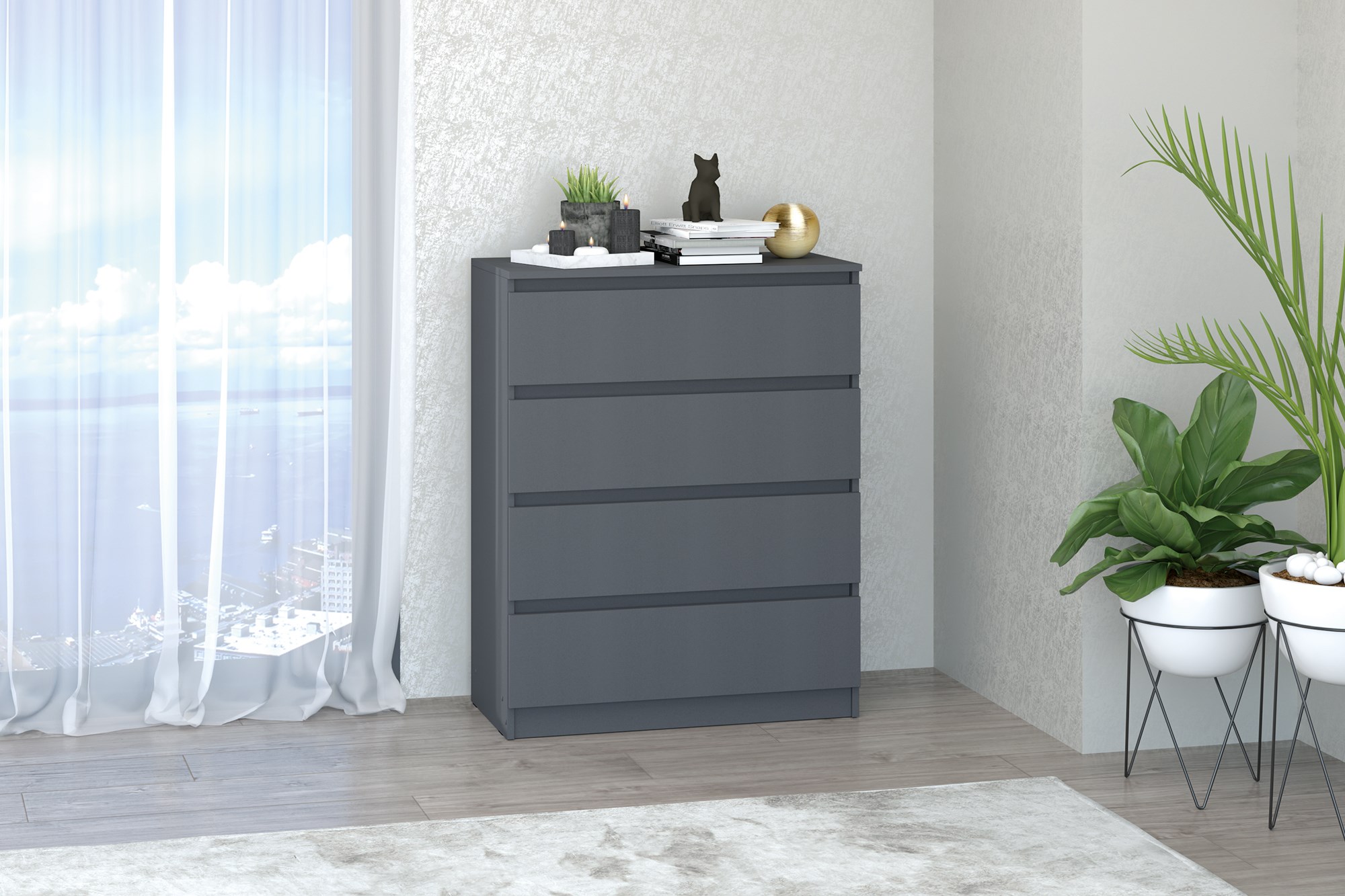 - Комод без ручек - ящики открываются с помощью захвата рукой.