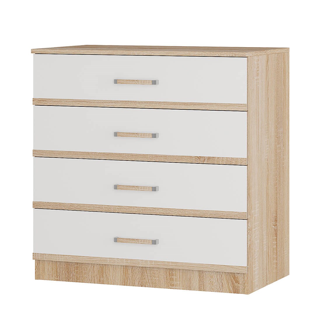 - классический комод Сакура состоит из четырех выдвижных ящиков, каждый из которых имеет светлый фасад и эргономичную ручку с хромированной отделкой,