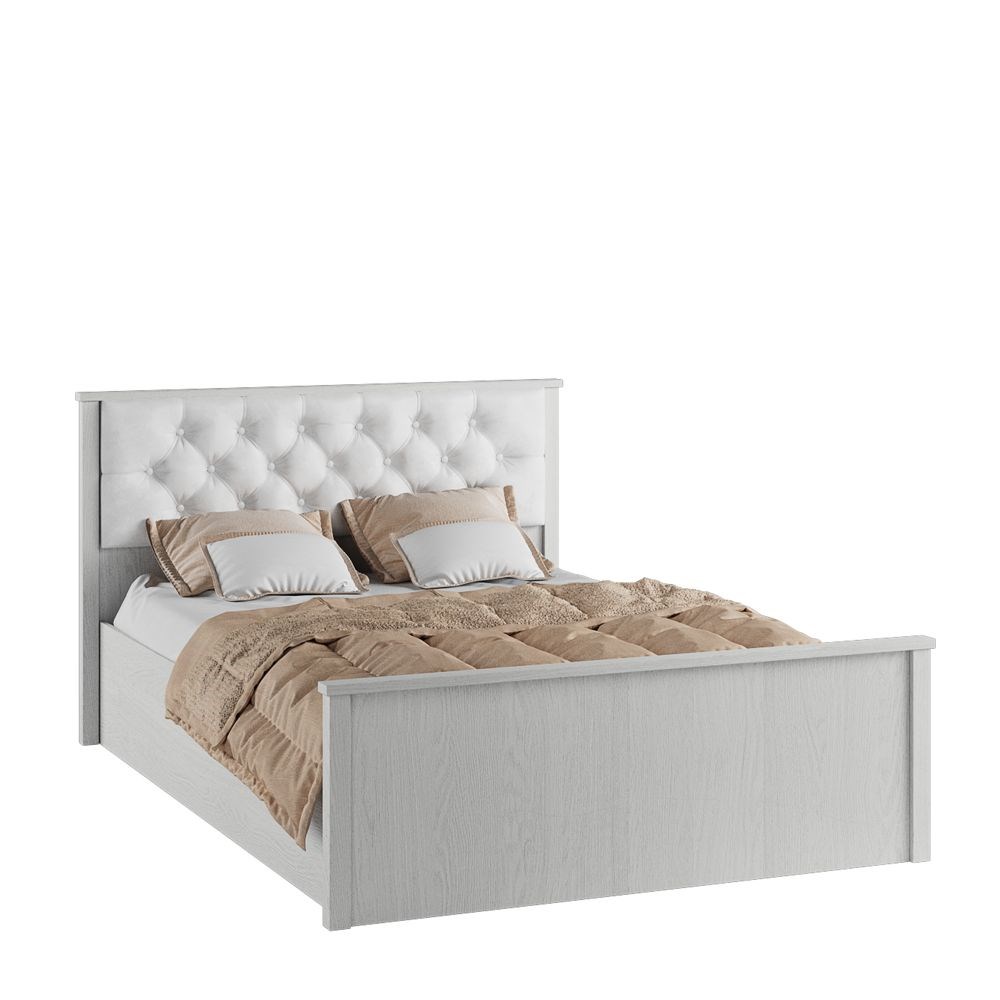 Кровать с надеждой и функциональной конструкцией с тремя видами основания на выбор: настил из ДСП, ортопедическое на независимых опорах и ортопедическое с подъемным механизмом и ящиком для хранения белья. Мягкая накладка из ЭКОкожи в изголовье подобрана в тон исполнения спального гарнитура: черная в цвете Гикори Рокфорд натуральный и белая в Ясене Анкоре Светлом. Изножье кровати украшено накладками из МДФ.