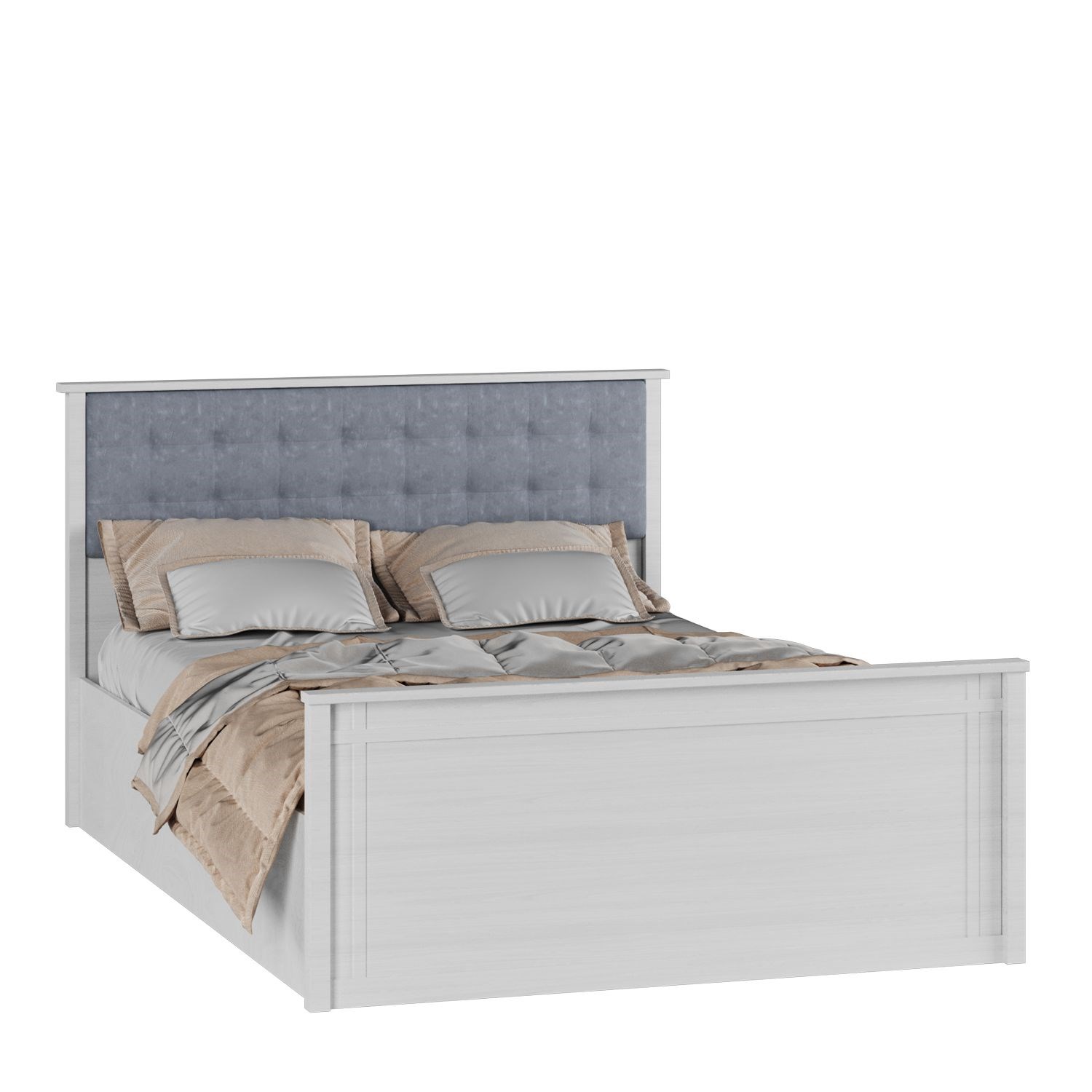 Кровать с надеждой и функциональной конструкцией с тремя видами основания на выбор: настил из ДСП, ортопедическое на независимых опорах и ортопедическое с подъемным механизмом и ящиком для хранения белья. Мягкая накладка в изголовье подобрана в тон исполнения спального гарнитура: «Пастельно-голубая» в Ясене Анкоре Светлом и «Латте» в Орехе Донском. Изножье украшено МДФ-раскладками.