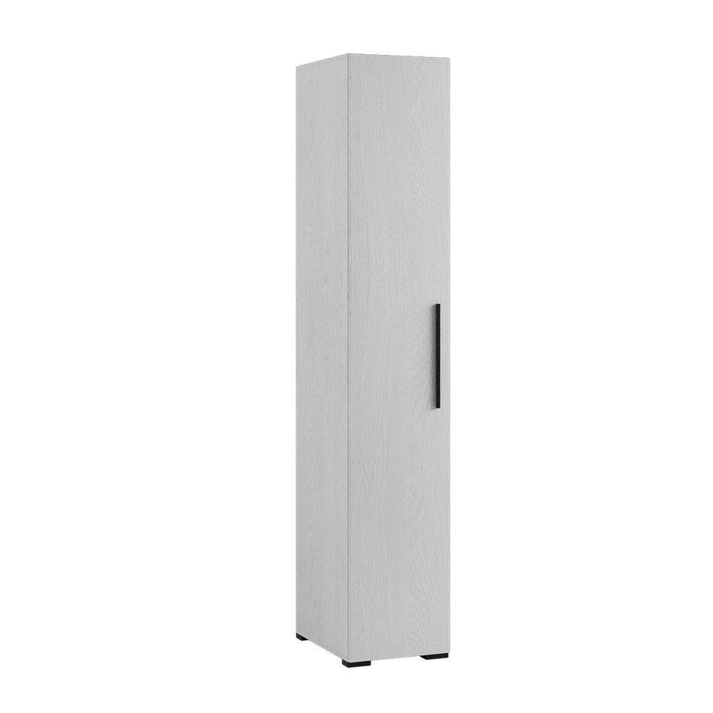 Высокий и глубокий пенал комплектуется и полками, и стационарной металлической штангой, поэтому организация внутреннего наполнения данного модуля останется на Ваше усмотрение. Модель оснащена петлями с доводчика для бесшумного закрывания фасада, длинной металлической ручкой черного цвета.
