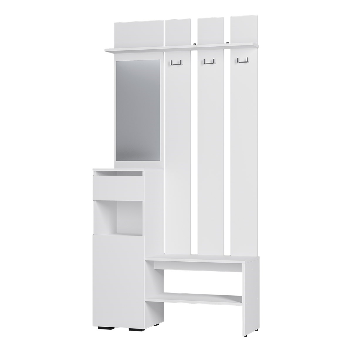 Максимальная нагрузка на ящик - 5 кг. Максимальная нагрузка на полку - 10 кг. Максимальная нагрузка на крючок - 5 кг. Универсальная сборка.