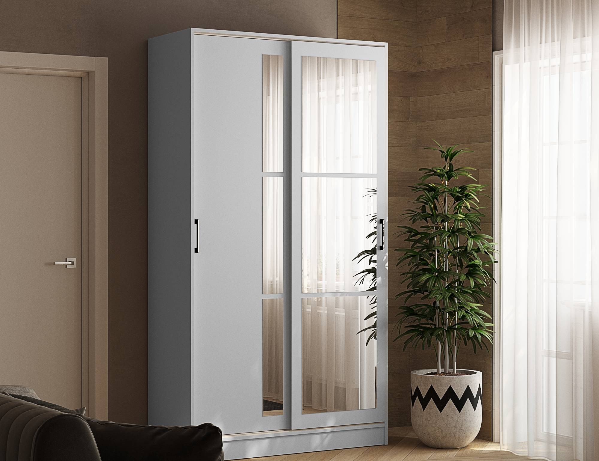 — Практичный шкаф со стационарной штангой и отсеком с полками