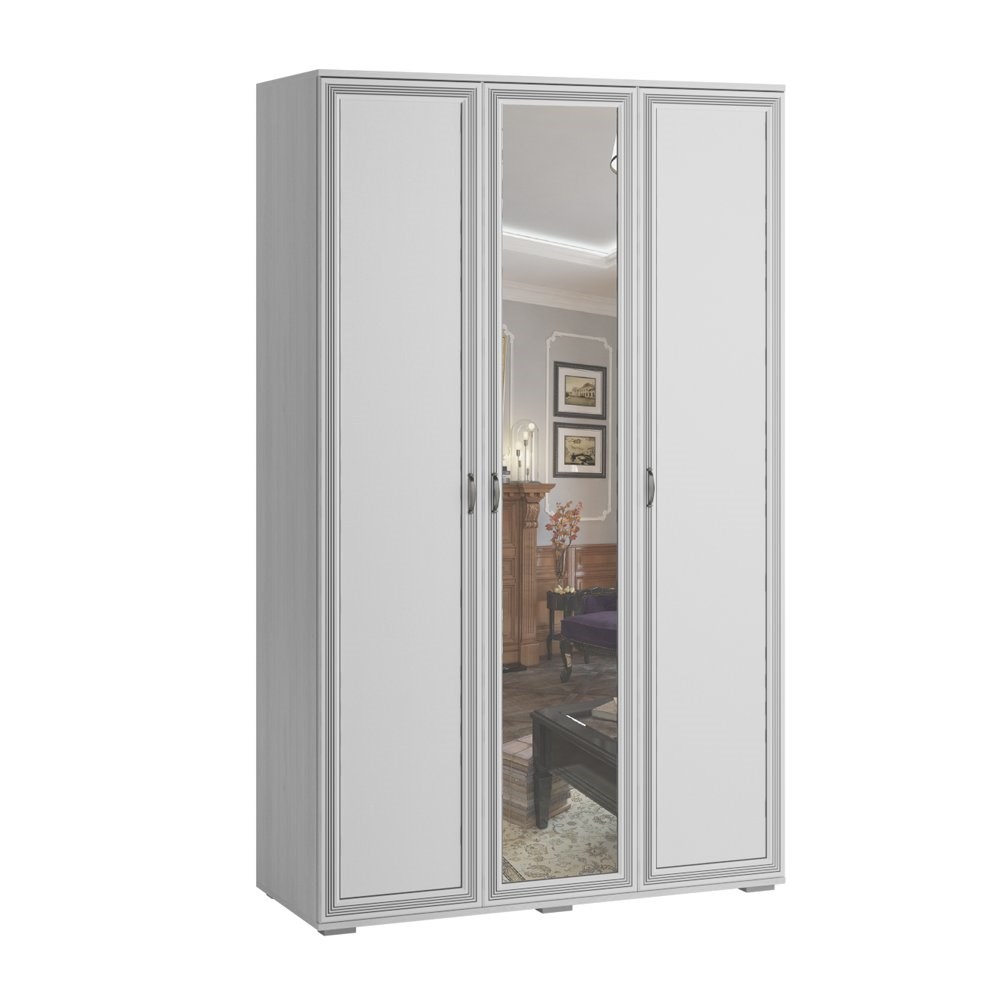 Вместительный трехдверный шкаф с продуманным функционалом поможет сэкономить пространство и придаст помещению современный вид. Шкаф оснащен отделением с четырьмя полками для хранения белья и стационарной металлической штангой для размещения одежды на плечиках. Центральный фасад с зеркалом в полный рост позволяет увидеть свое отражение без помех. Изнутри зеркало покрыто специальной защитной пленкой, которая в случае повреждения стекла сохранит каждый его кусочек.