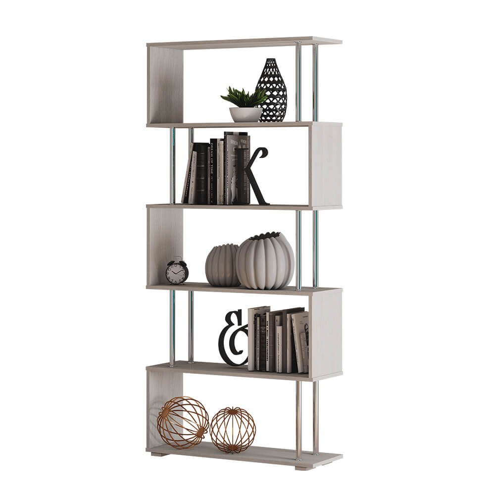 - невесомости основным полкам стеллажа, выполненным в светлом цвете лоредо, венге, придают хромированные штанги.