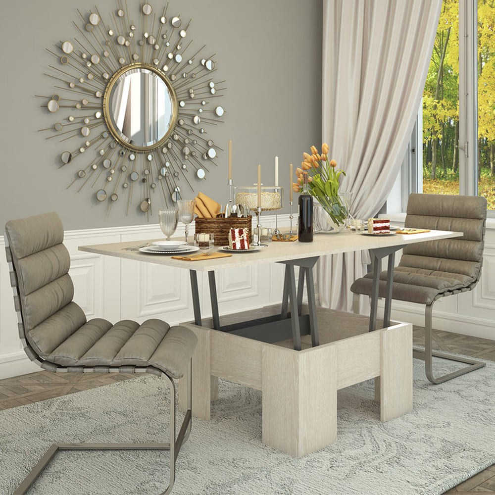 - модель будет прекрасно смотреться в гостиной, а к приходу гостей – с легкостью превратиться в полноценный стол,